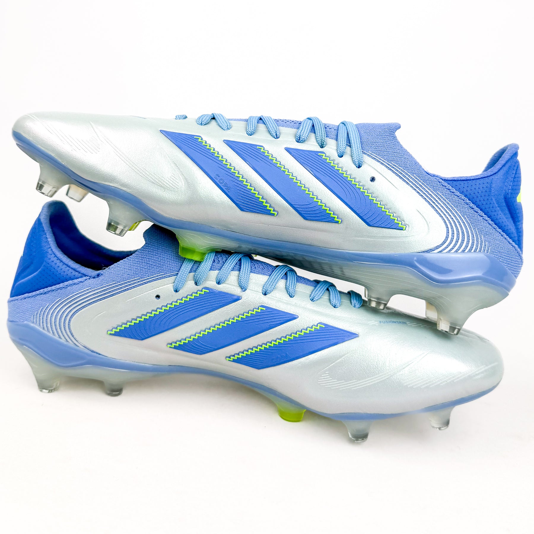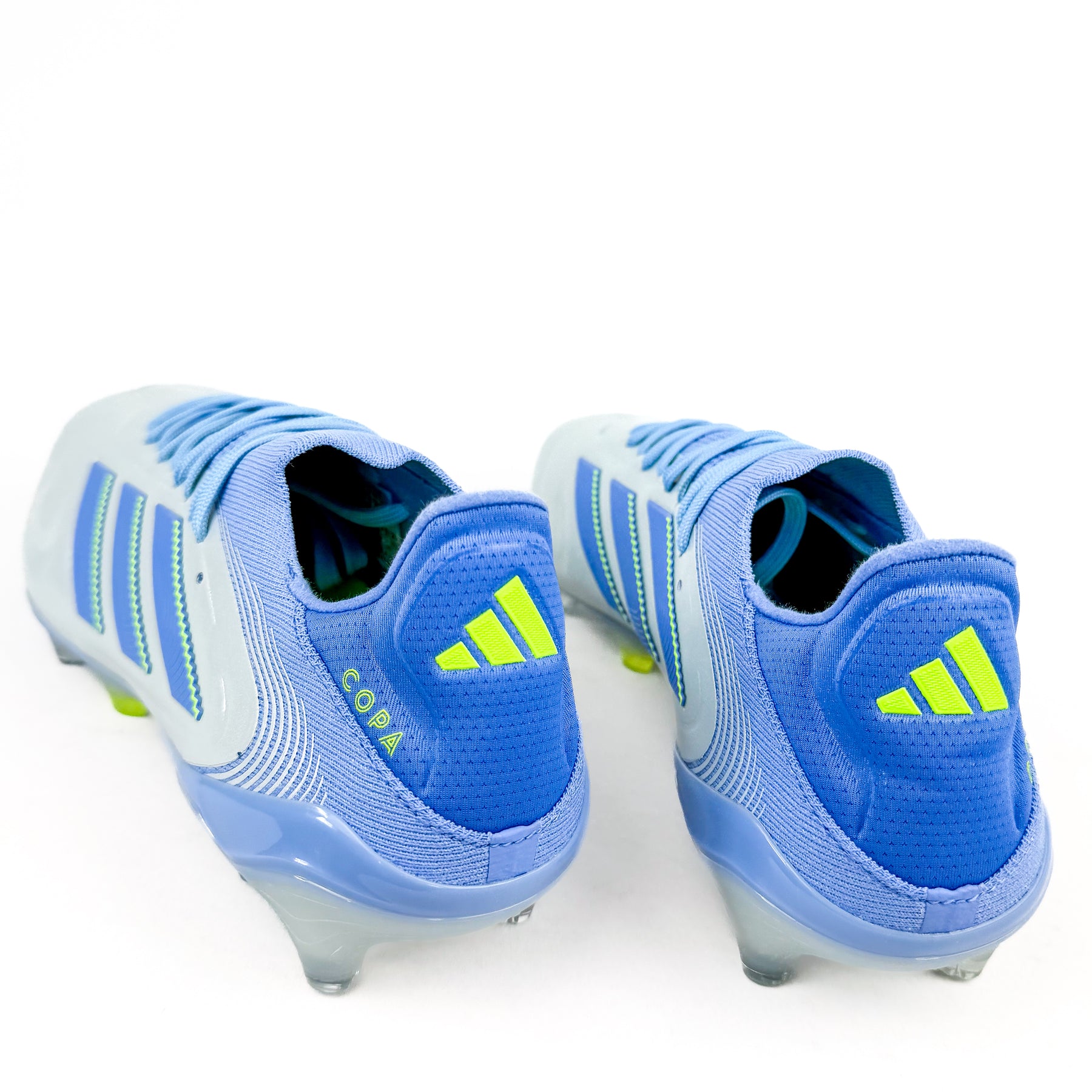 This setup combines the benefits of the Copa's one-piece upper and elasticated knit collar with the added adjustability of laces, providing enhanced lockdown and a more secure fit on the foot.